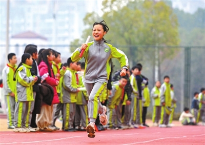 近日,湖南省長沙市開福區(qū)新竹第二小學開展“雋園歡騰慶元旦 騏驥昂首啟新程”活動。圖為學生在進行班級接力賽跑。郭立亮 攝