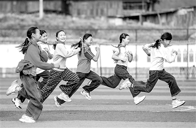 ▲貴州省從江縣剛邊壯族鄉(xiāng)中心小學學生在進行趣味跑。