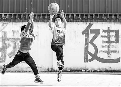 貴州省從江縣剛邊壯族鄉(xiāng)中心小學學生在進行籃球?qū)官悺? 通訊員 羅京來 攝