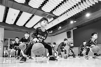 2月3日,在廬陽區(qū)全民健身體育中心,小朋友們正在練習(xí)打籃球。
