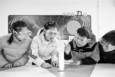2月3日,在廬陽區(qū)海棠街道黨群服務(wù)中心,小朋友們正在做科學(xué)實驗。趙明 攝