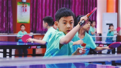 圖①北京密云區(qū)第四小學學生在練習乒乓球。本報記者 李下惠 攝