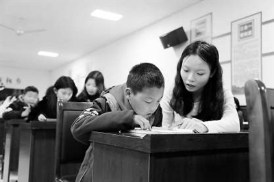 ②商林鄉(xiāng)伴學(xué)點大學(xué)生志愿者陪伴孩子學(xué)習(xí)。李志強 攝